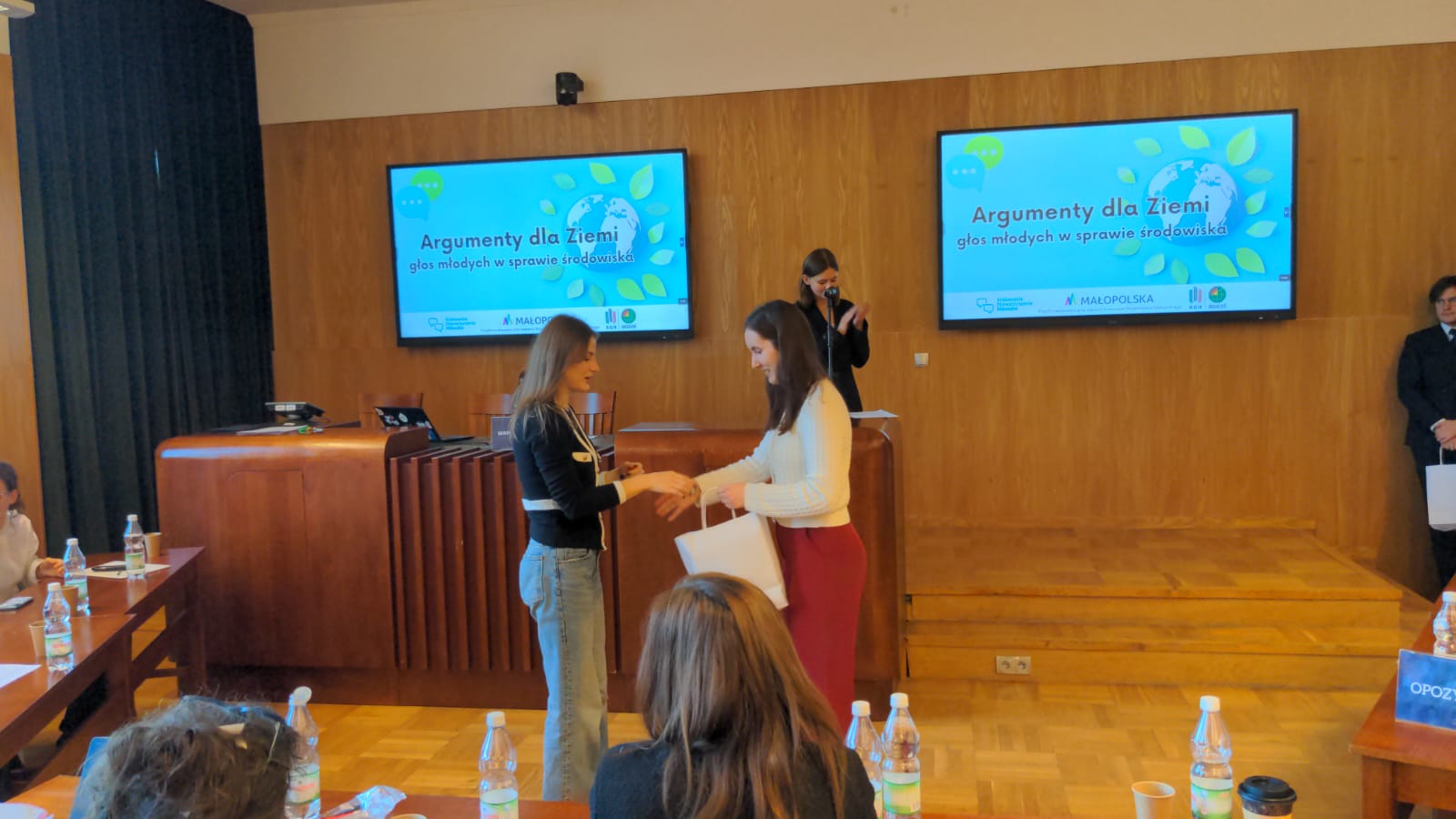 Uczestnicy wydarzenia stanowili również audytorium debaty oksfordzkiej, w której udział wzięły drużyny XX Liceum Ogólnokształcącego - w składzie: Magdalena Gawron, Oliwia Dutka, Martyna Woźniak, Mikołaj Tłustochowicz oraz I Liceum Ogólnokształcącego im. Bartłomieja Nowodworskiego w Krakowie.