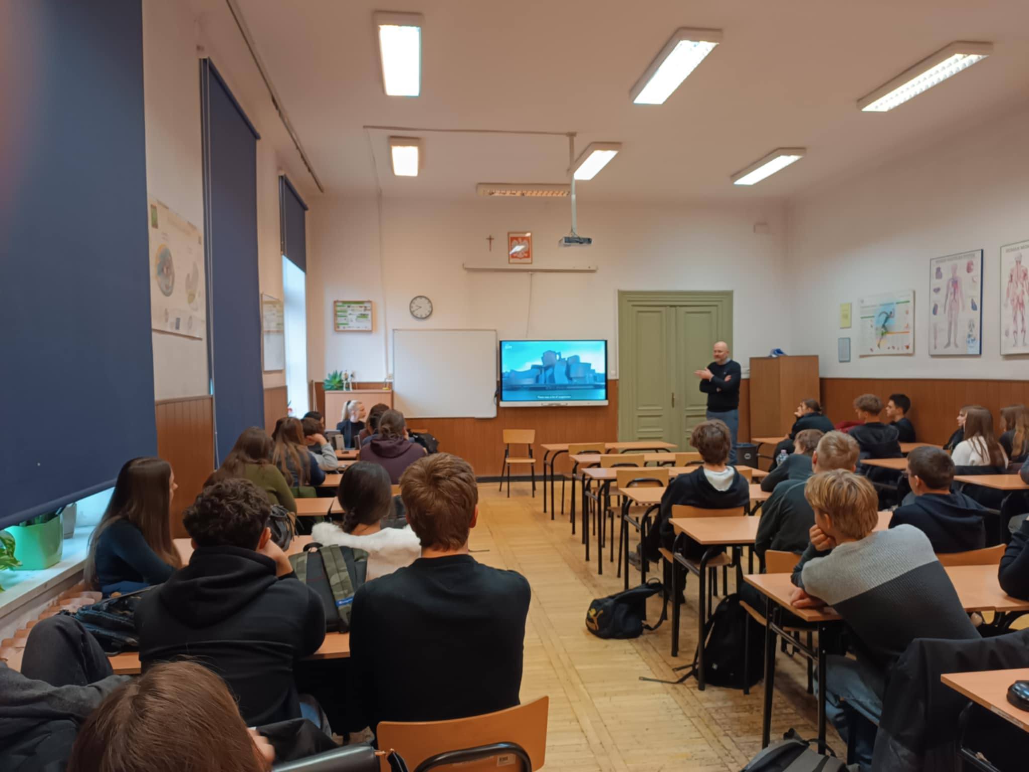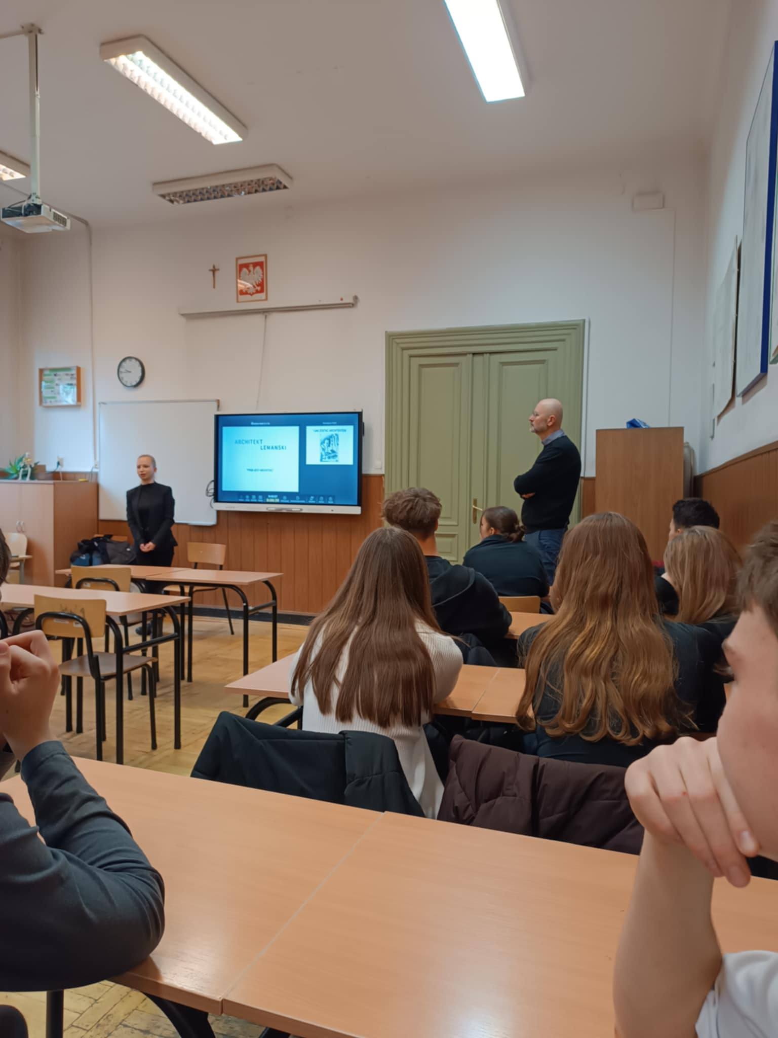 Również 16.12.2025 roku, w ramach doradztwa edukacyjno-zawodowego, uczniowie klas 3d oraz zainteresowani uczniowie klas 4b i 4f mieli okazję zapoznać się z tematyką zawodu architekta. Odbyło się spotkanie z pracującymi w zawodzie architektami - panem Tadeuszem Lemańskim oraz jego współpracownicą.