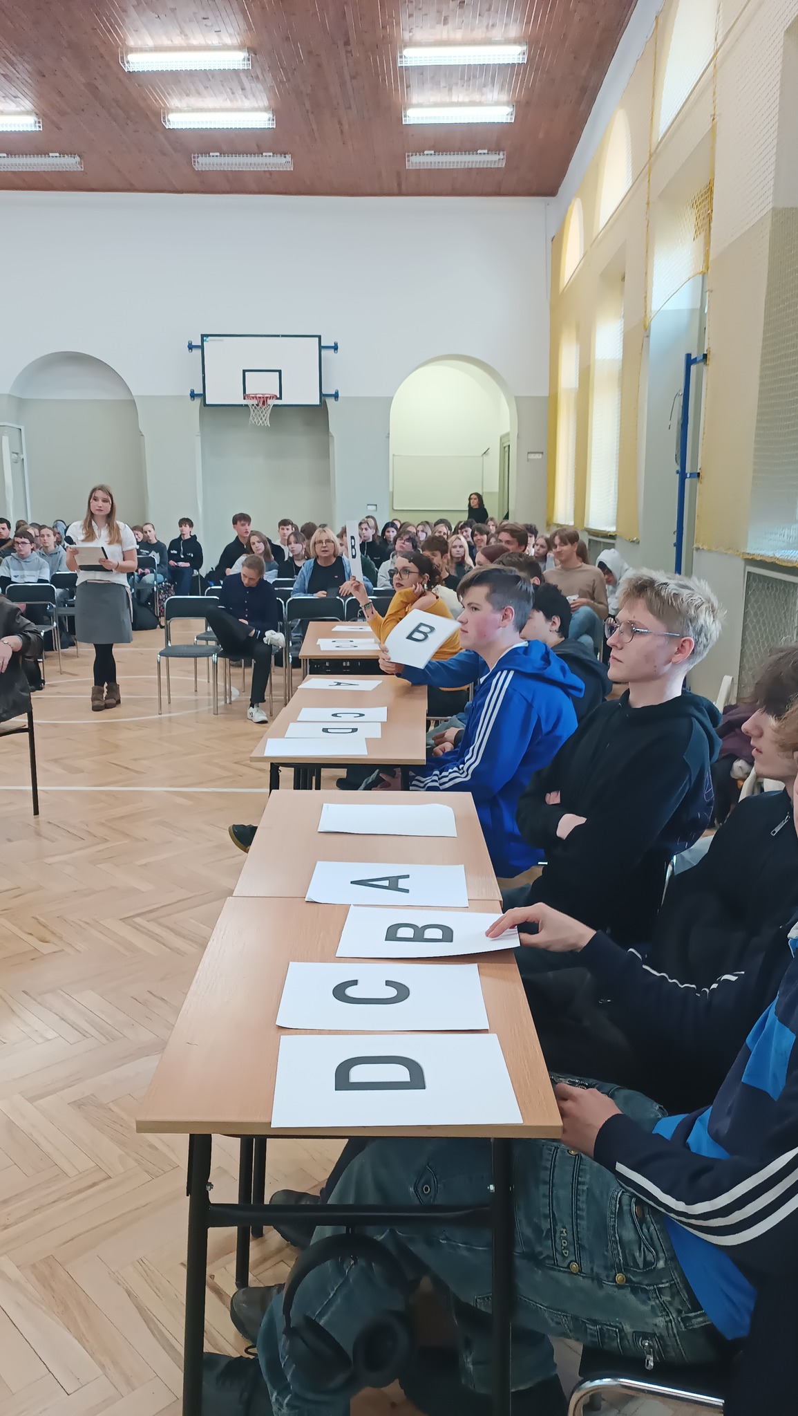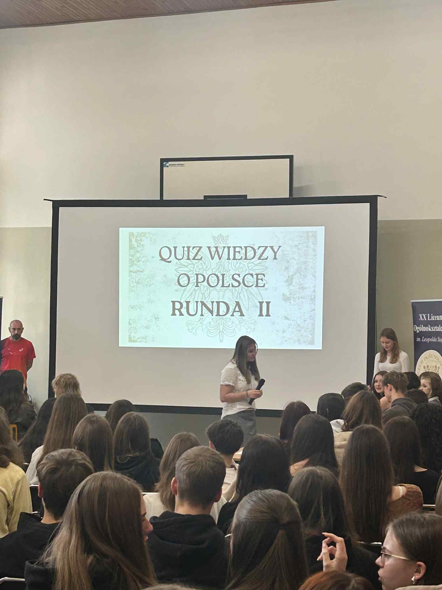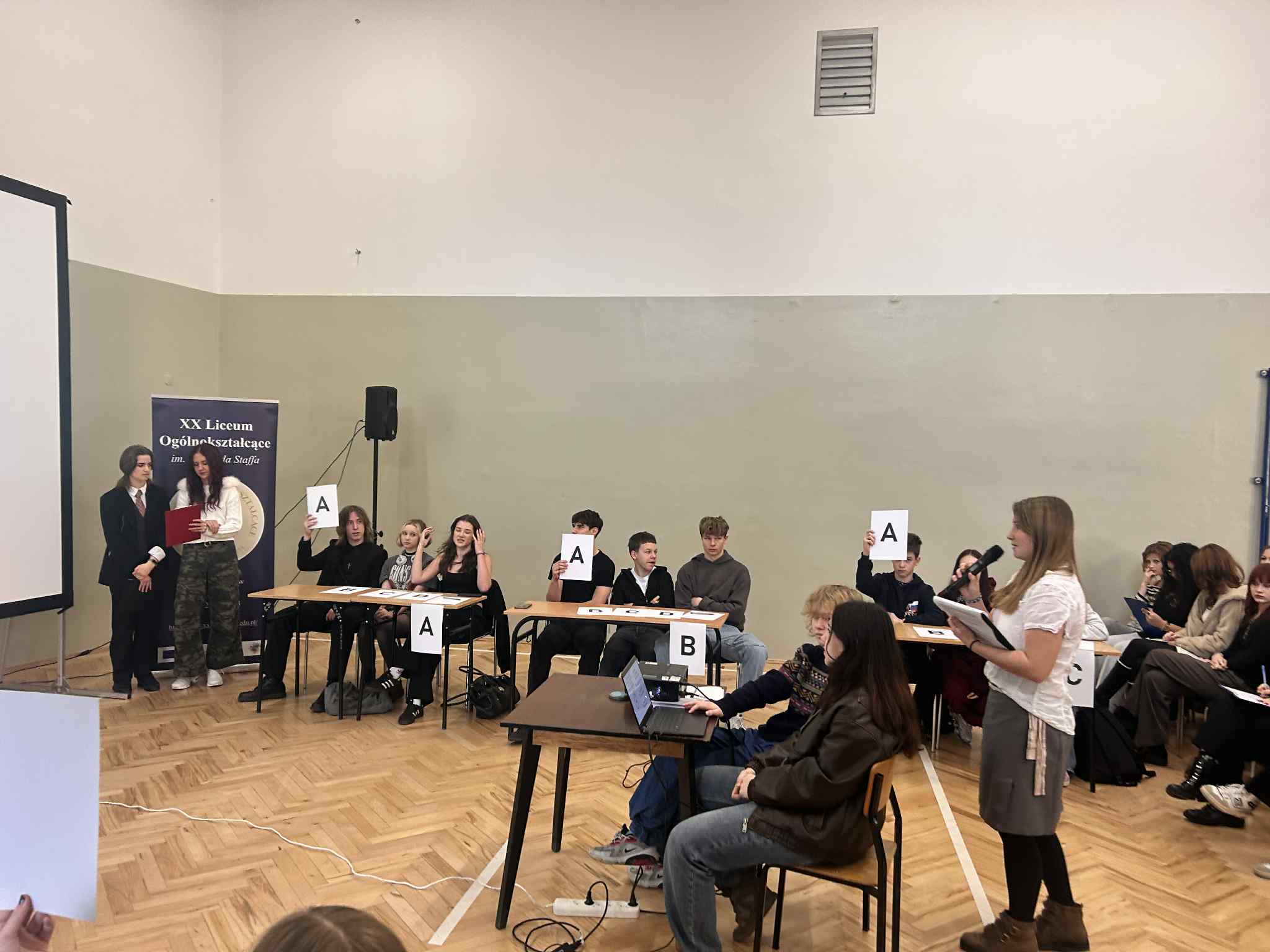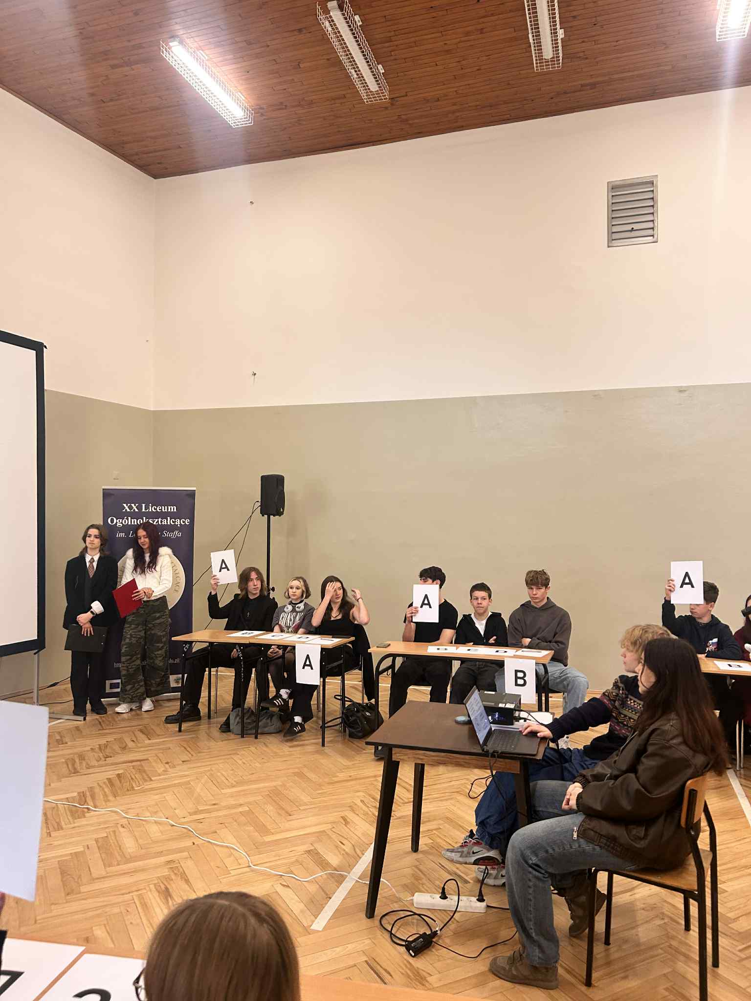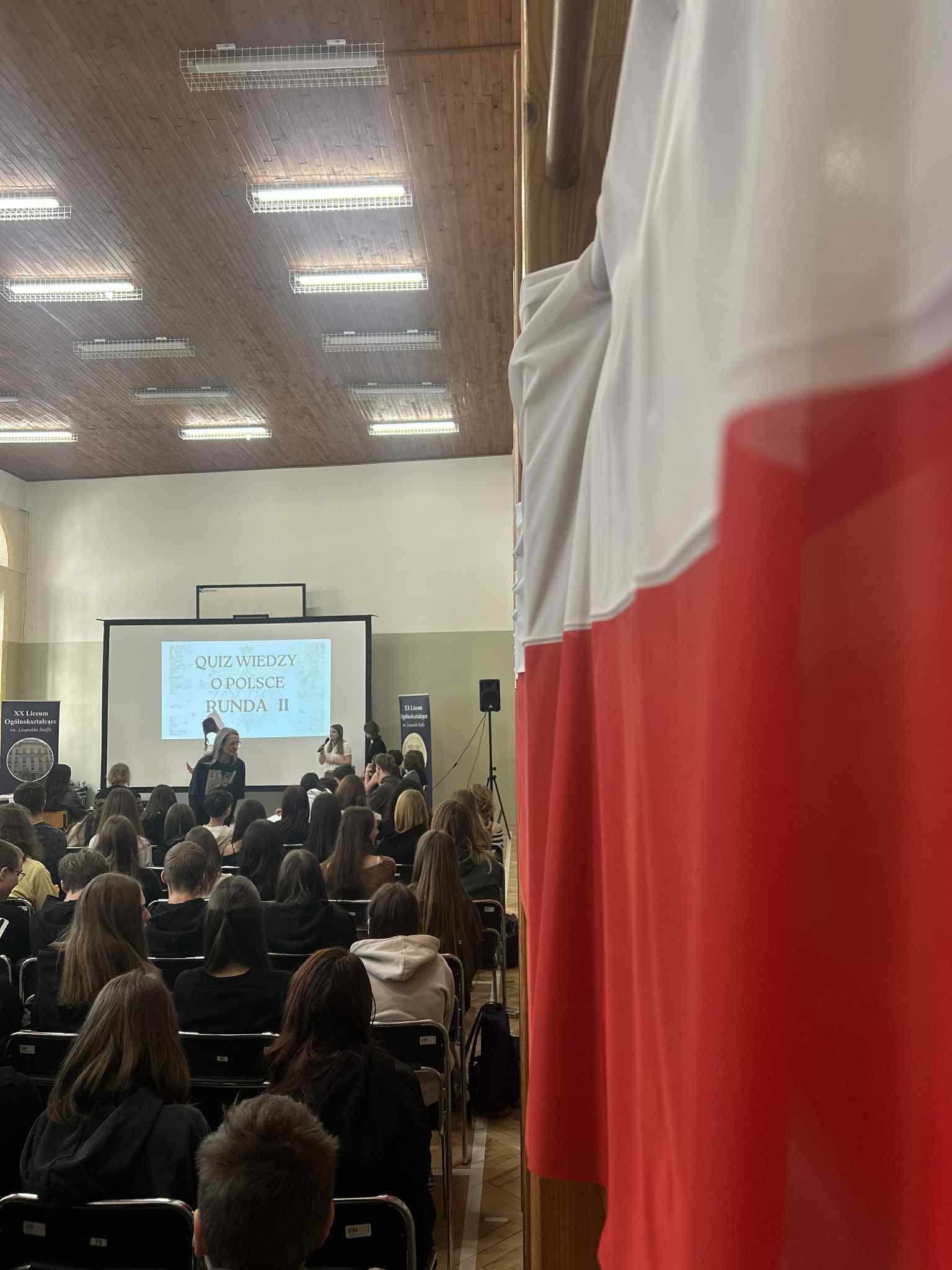 W piątek 21.11.2025 r., z okazji Narodowego Święta Niepodległości, odbył się Quiz Wiedzy o Polsce. W tym międzyklasowym turnieju wzięło udział aż osiemnaście trzyosobowych drużyn reprezentujących wszystkie klasy pierwsze, drugie i trzecie. Uczniowie mierzyli się z pytaniami z historii, geografii, literatury, kultury, sportu oraz ustroju społeczno-politycznego.