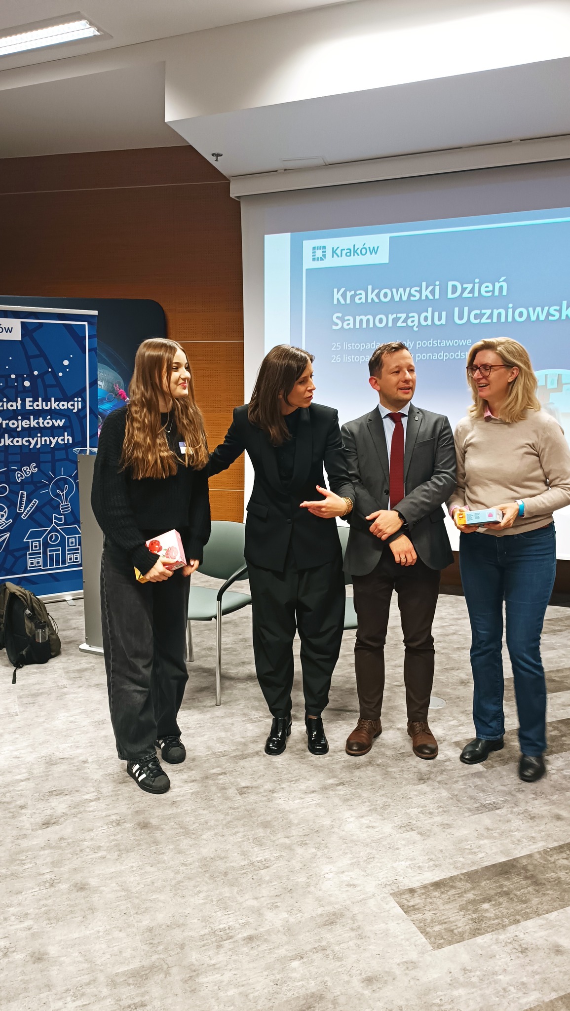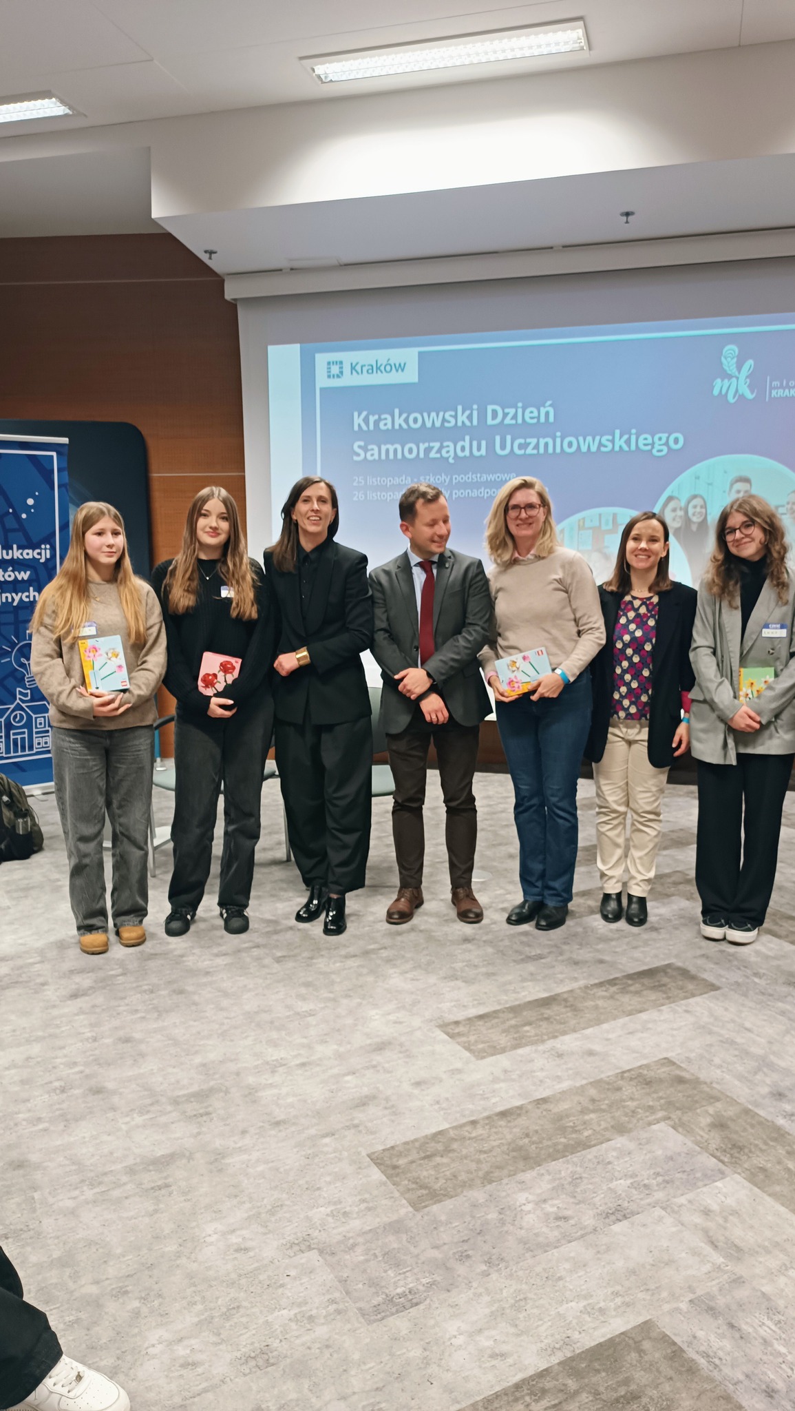 26 listopada 2025 r. przedstawiciele naszego Samorządu Uczniowskiego, pod opieką Pani Prof. Joanny Skoniecznej, wzięli udział w Krakowskim Dniu Samorządu Uczniowskiego, który odbył się w TAURON Arena Kraków. Wydarzenie, które realizowane jest w ramach programu Młody Kraków 2024–2028, zgromadziło młodzież z wielu krakowskich szkół.